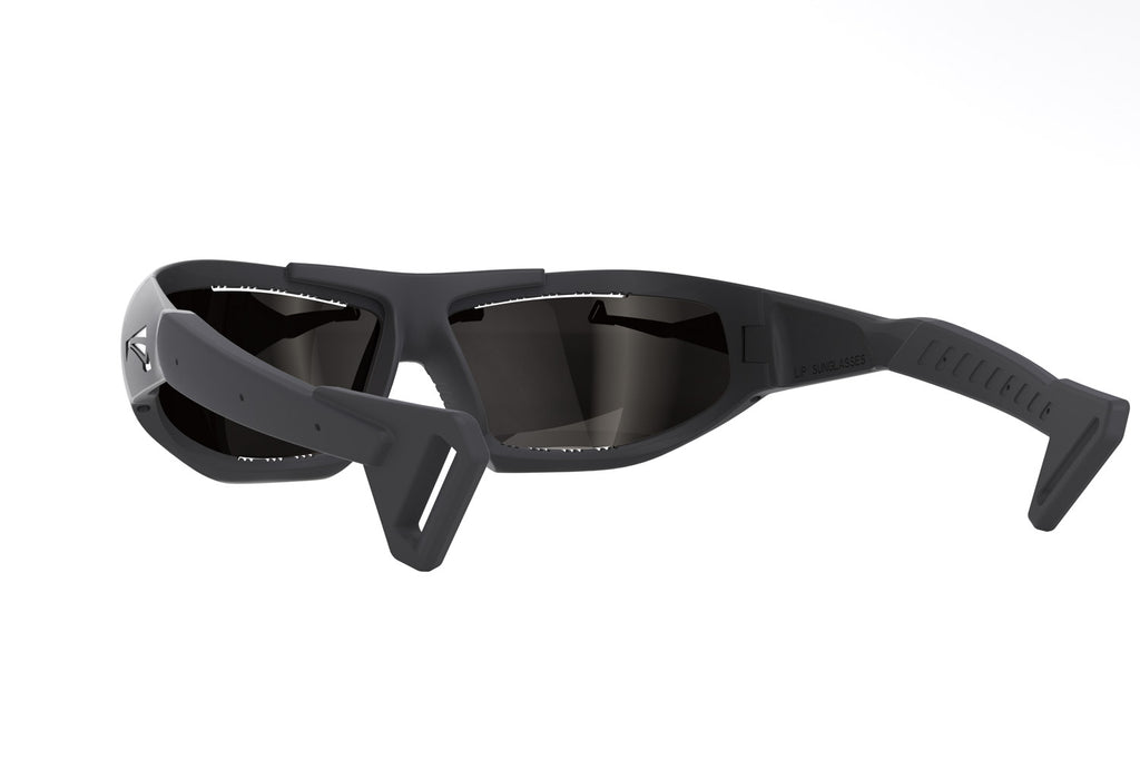 Injection moulded TPU rubber fused to the inside surface of the frame and on the temple tips provides a comfortable interface and a cushion effect on impacts.